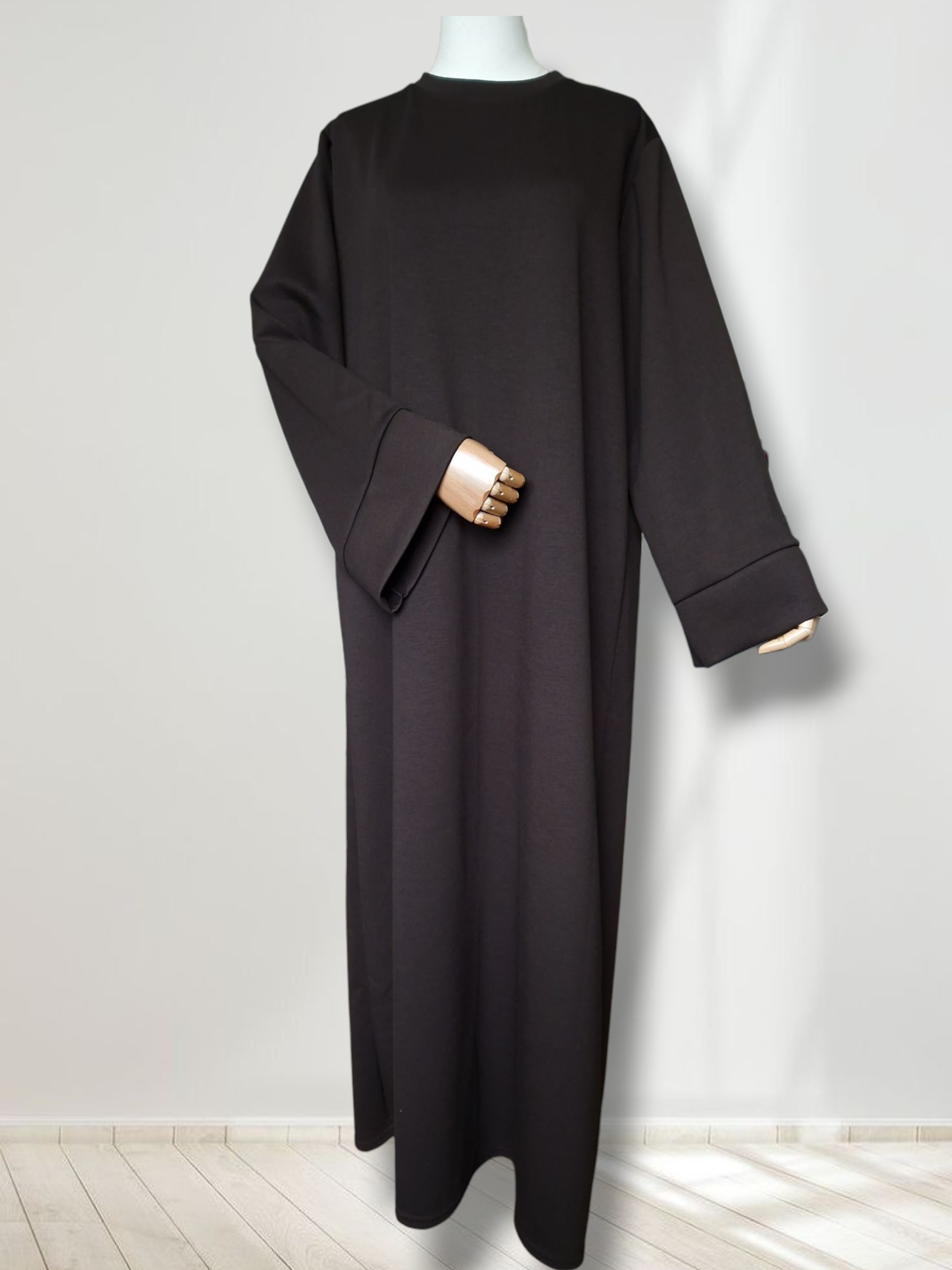 Eleganz und Komfort für die kalte Jahreszeit - Diese wunderschöne und schlichte Abaya vereint zeitlose Eleganz mit höchstem Tragekomfort. Gefertigt aus einem etwas dickeren Stoff, eignet sie sich perfekt für die kälteren Monate - warm, weich und dennoch atmungsaktiv.